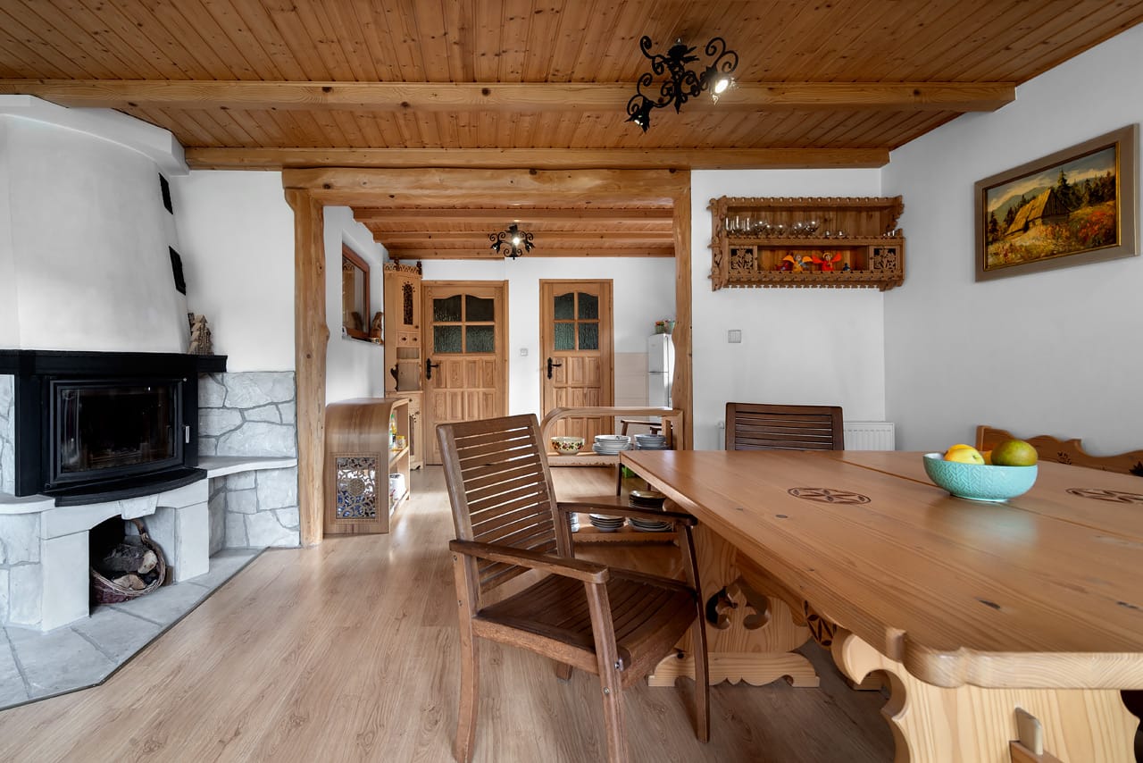 Holiday Cottage for rent in Szczawnica | Open Space > Living Room with Fireplace